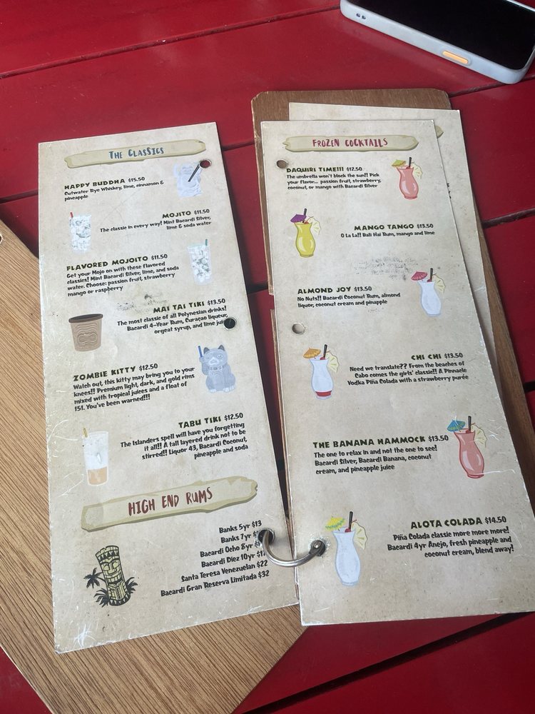 The outdoor seating, cool tiki decor, and friendly service make dining here a pleasant experience. The happy hour specials, including delicious piña coladas and flavorful appetizers like chicken skewers and coconut shrimp, are a must-try. The menu also features unique dishes like the Tonga French Toast and bottomless mimosas for brunch.